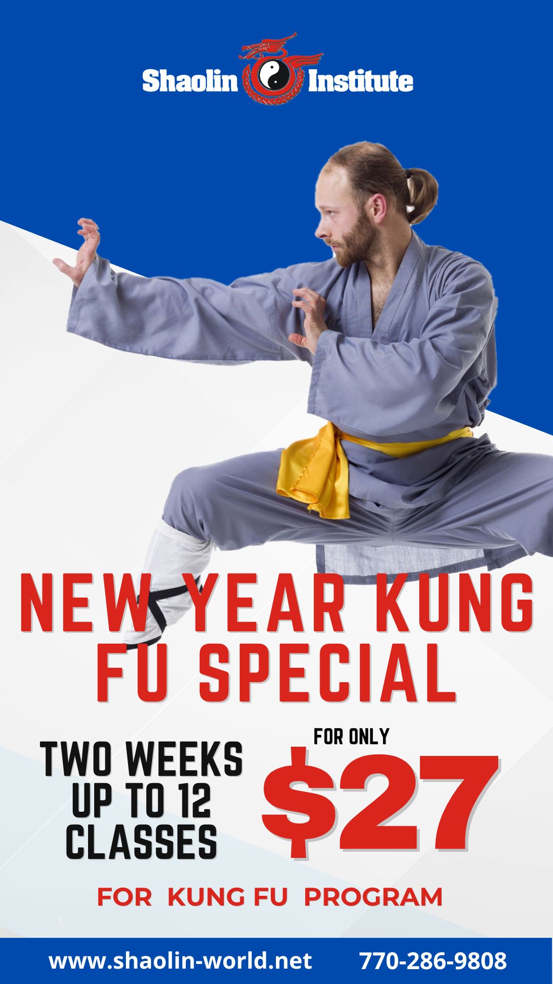 Shaolin Institute New Year Special–Two Week Classes